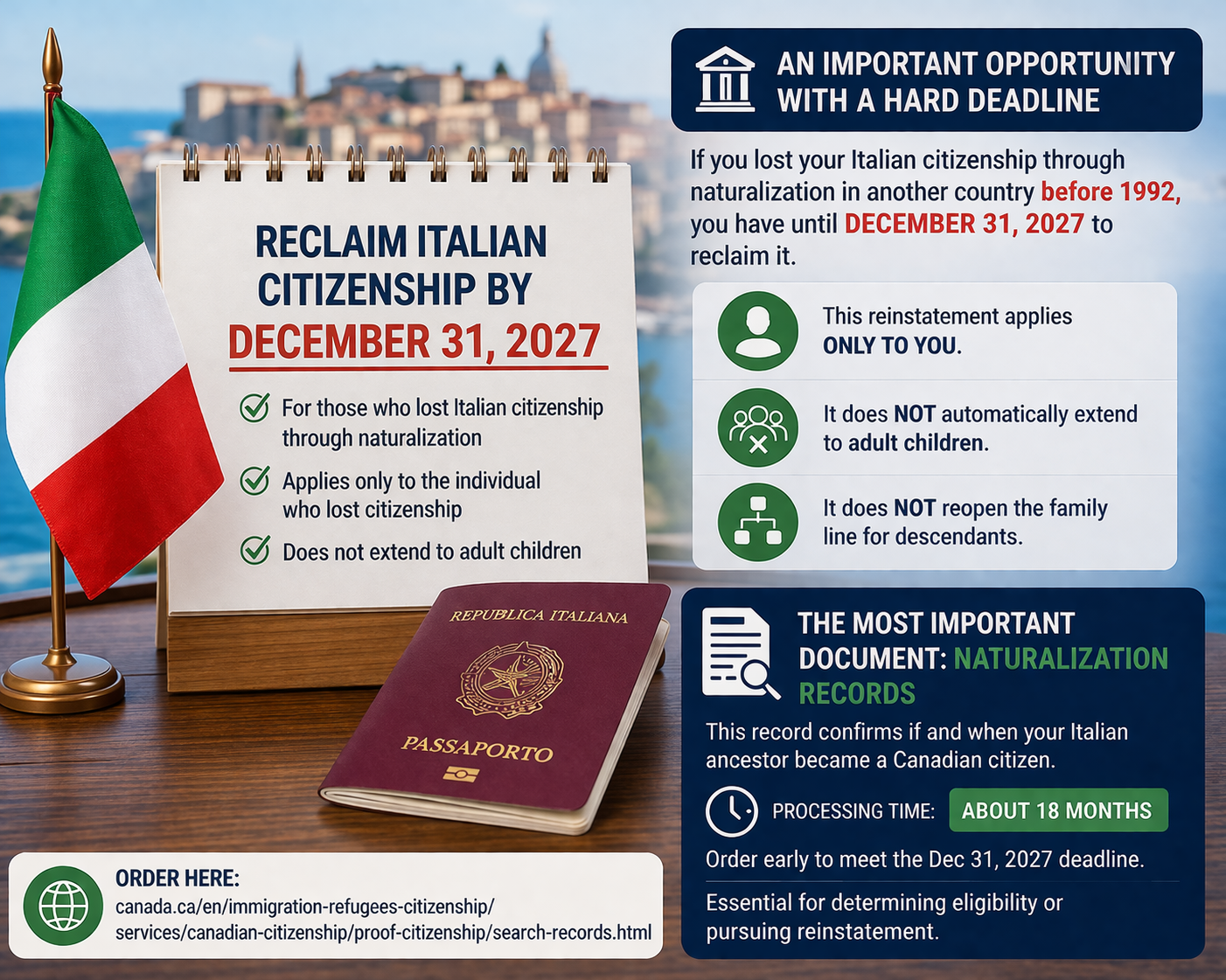 For families with Italian ancestry, the most important step right now is gathering the key documents that determine eligibility, especially naturalization records.